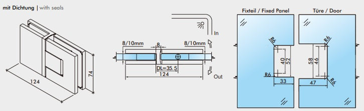 Montageart: 180° Glas-Glas, 90° nach innen u. 90° nach außen