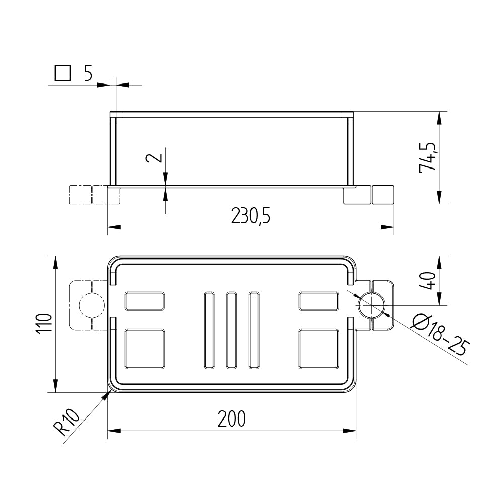 Maße: 230,5 x 110 x 74,5 mm