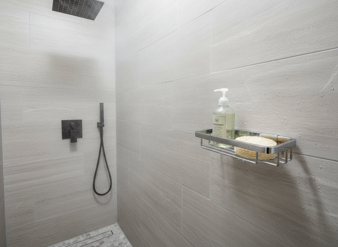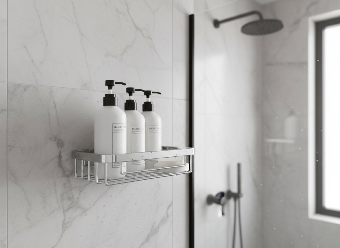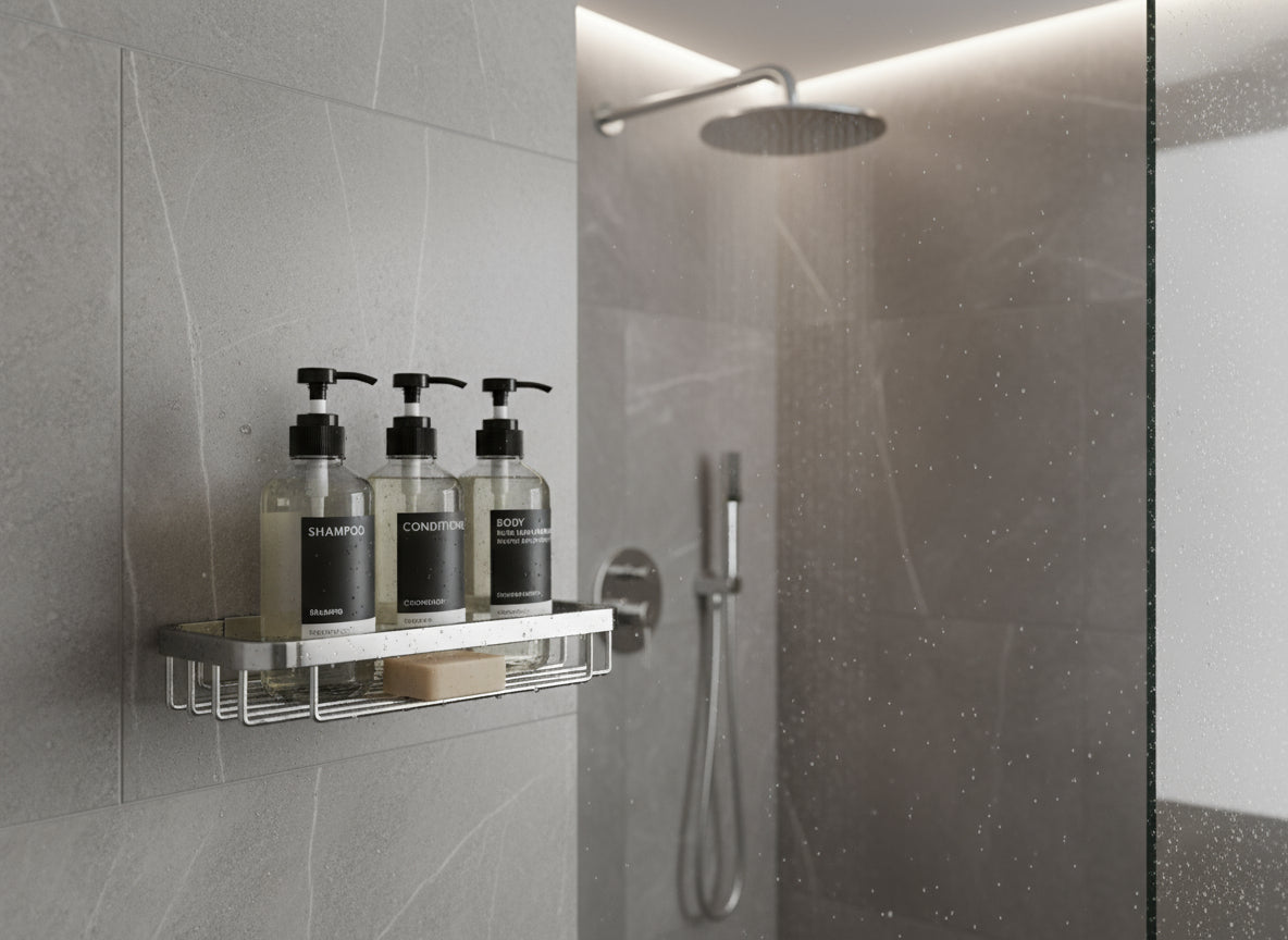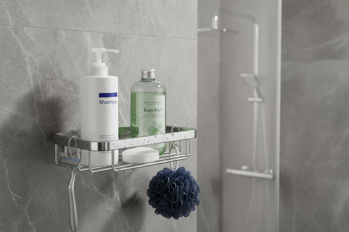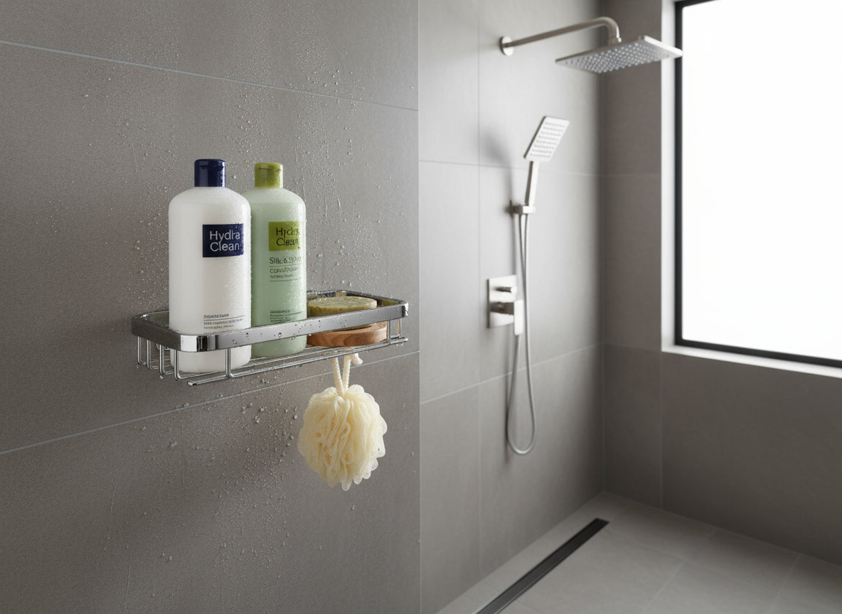 • Platzsparend und praktisch für Dusche oder Waschbereich