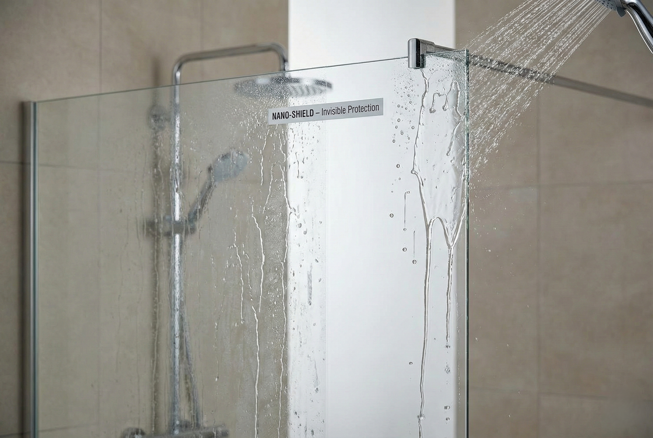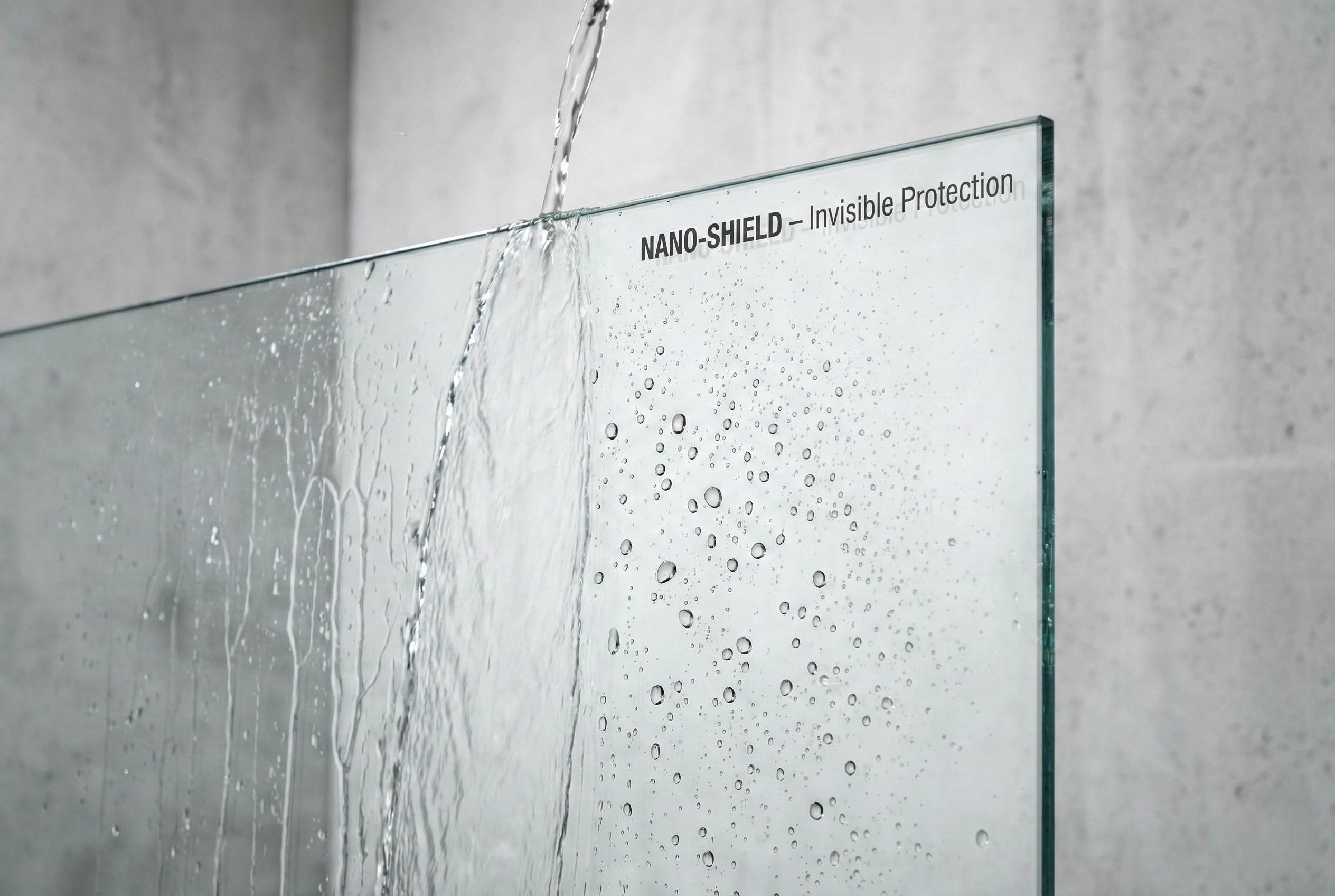 Die spezielle Nanobeschichtung bildet eine ultradünne, unsichtbare Schutzschicht auf der Glasoberfläche. Diese verhindert, dass sich Kalk, Seifenreste und Schmutz fest mit dem Glas verbinden können. Wasser perlt einfach ab und nimmt Schmutzpartikel gleich mit – für ein nahezu selbstreinigendes Glas!