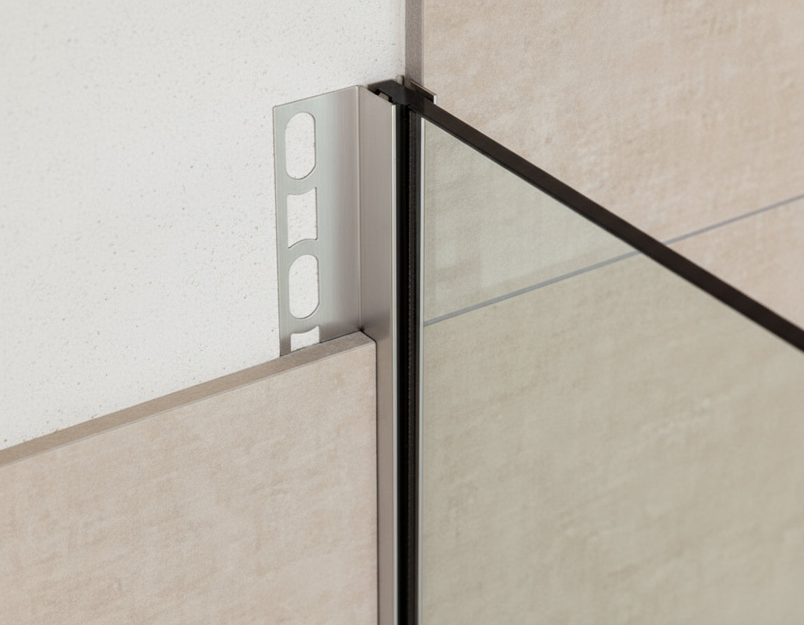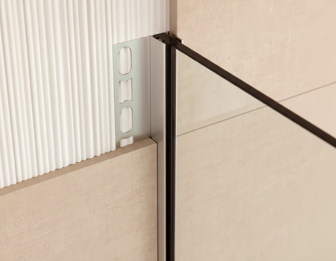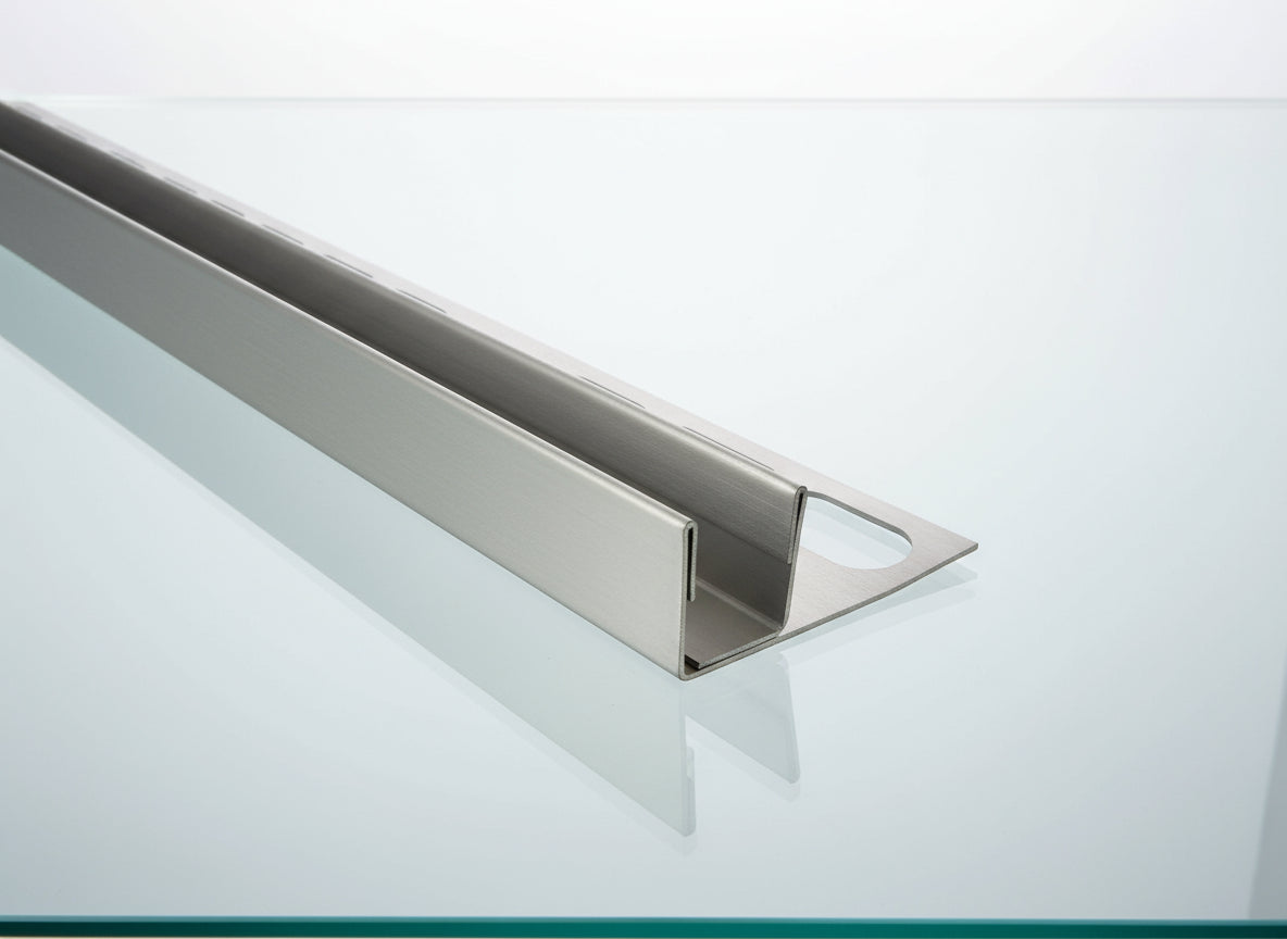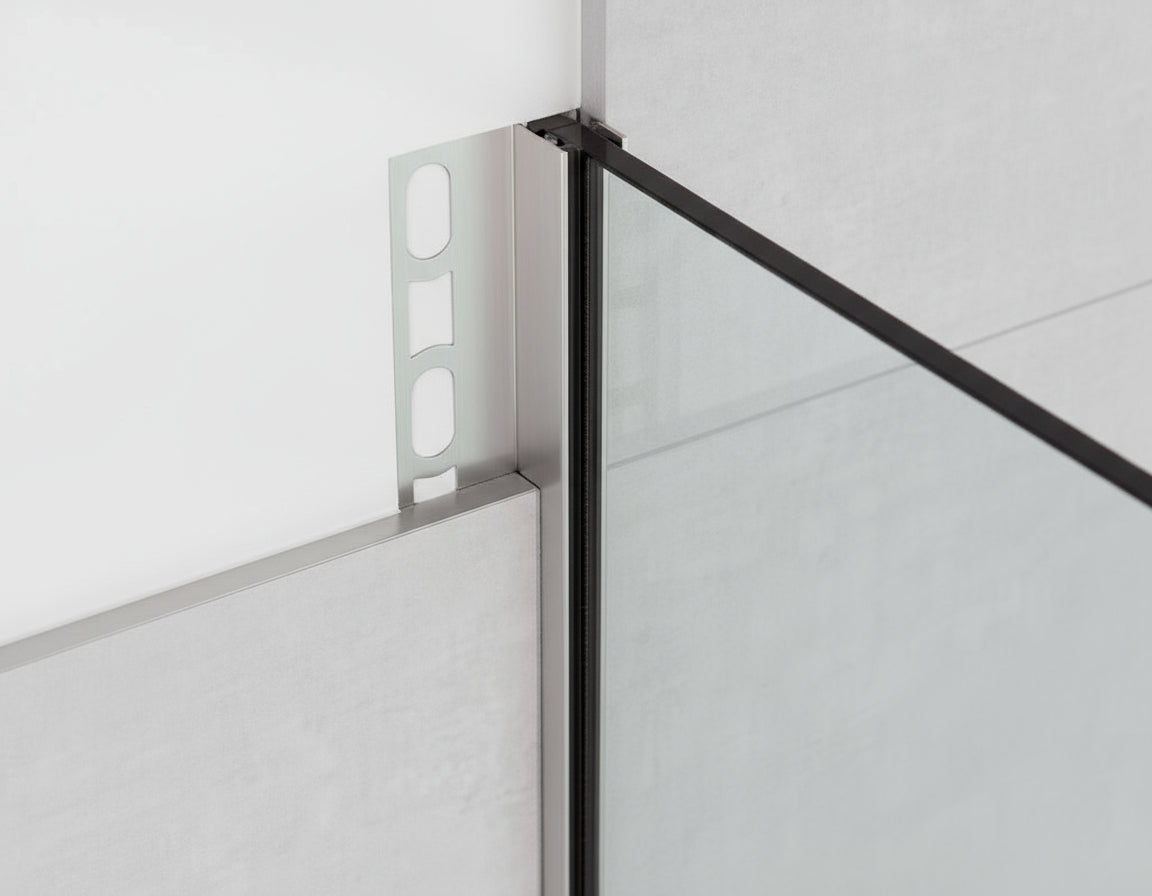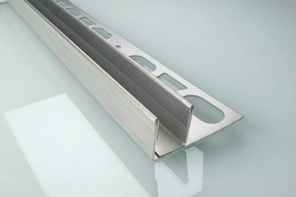 Das U-Winkelprofil aus Edelstahl bietet eine elegante Möglichkeit, Glastrennwände in einer begehbaren Dusche zu befestigen, ohne Löcher dabei in den Boden oder die Wand zu bohren. Das sichert eine absolute dauerhafte Dichtheit und schützt den Untergrund vor Feuchtigkeit.