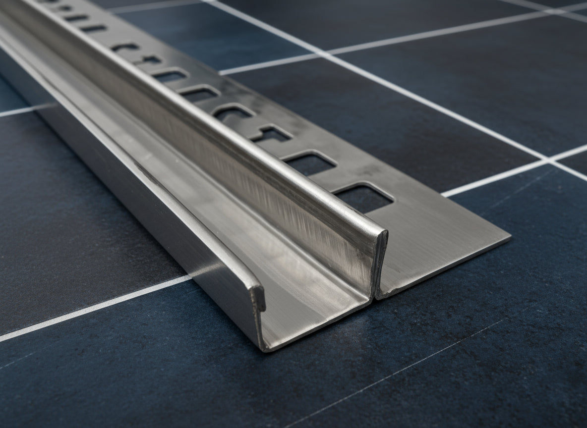Das matt geschliffene (gebürstete) Edelstahl U-Winkelprofil mit Auflageschenkel eignet sich ideal für die Aufnahme von Glastrennwänden aus Sicherheitsglas in begehbaren Duschen. Das Profil wird ohne Bohrungen an Wand oder Boden montiert und ermöglicht somit eine wasserdichte Verankerung ohne Unterbrechung der Abdichtungsebene.
