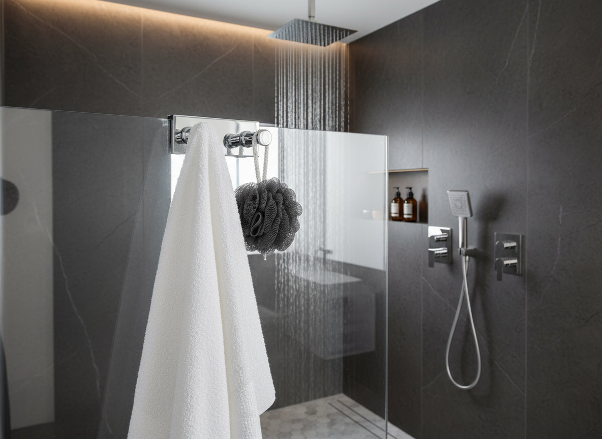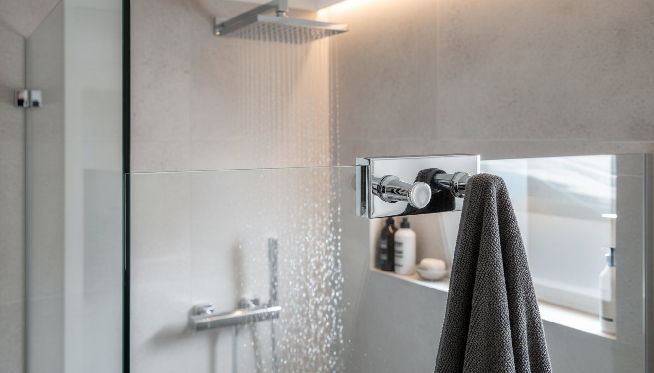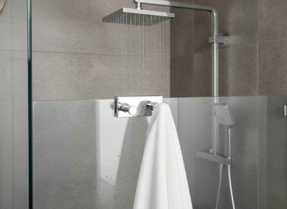 Diese elegante Hakenleiste ist die perfekte Lösung, um in Ihrer Dusche zusätzlichen Platz für Handtücher, Waschlappen oder Pflegeutensilien zu schaffen. Sie wird einfach über die Glaskante gehängt – ganz ohne Bohren oder Schrauben.