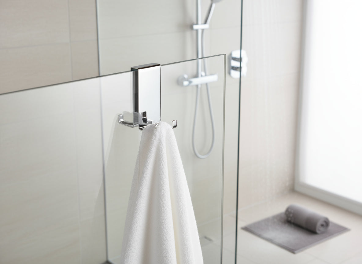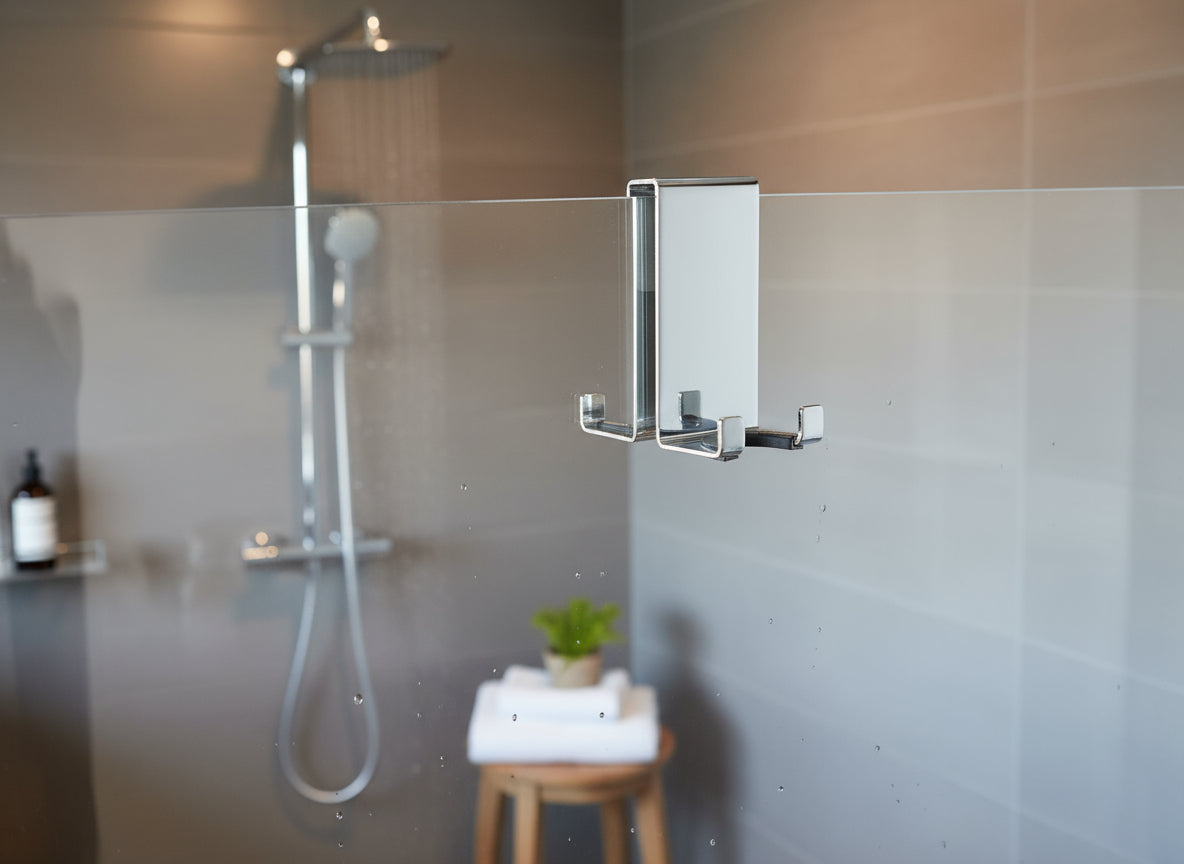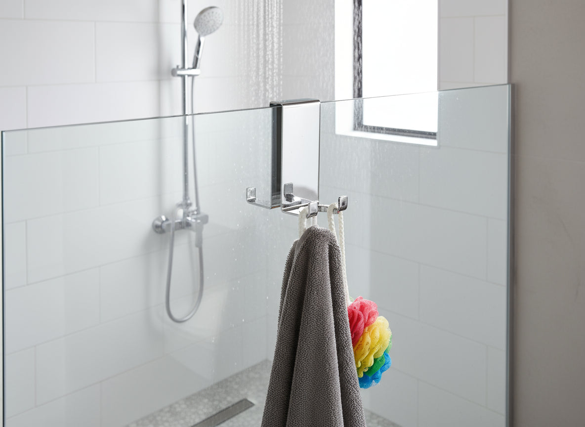 Maximaler Stauraum auf kleinstem Raum: Mit diesem praktischen Halter für Duschabtrennungen schaffen Sie Ordnung und Übersicht in Ihrer Dusche. Ausgestattet mit vier stabilen Haken bietet er Platz für Handtücher, Bademäntel oder Pflegeutensilien. Die Montage erfolgt einfach durch Einhängen über die Glaskante – ganz ohne Bohren, Schrauben oder Kleben.