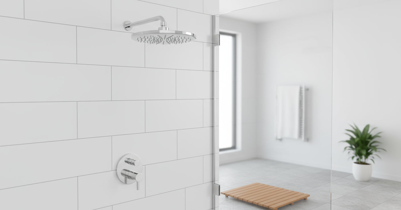 Die Montage erfolgt ganz einfach per Anbau an einen Brausearm mit 1/2"-Anschluss. Dank der klaren Linienführung fügt sich die Kopfbrause nahtlos in moderne wie klassische Badgestaltungen ein.