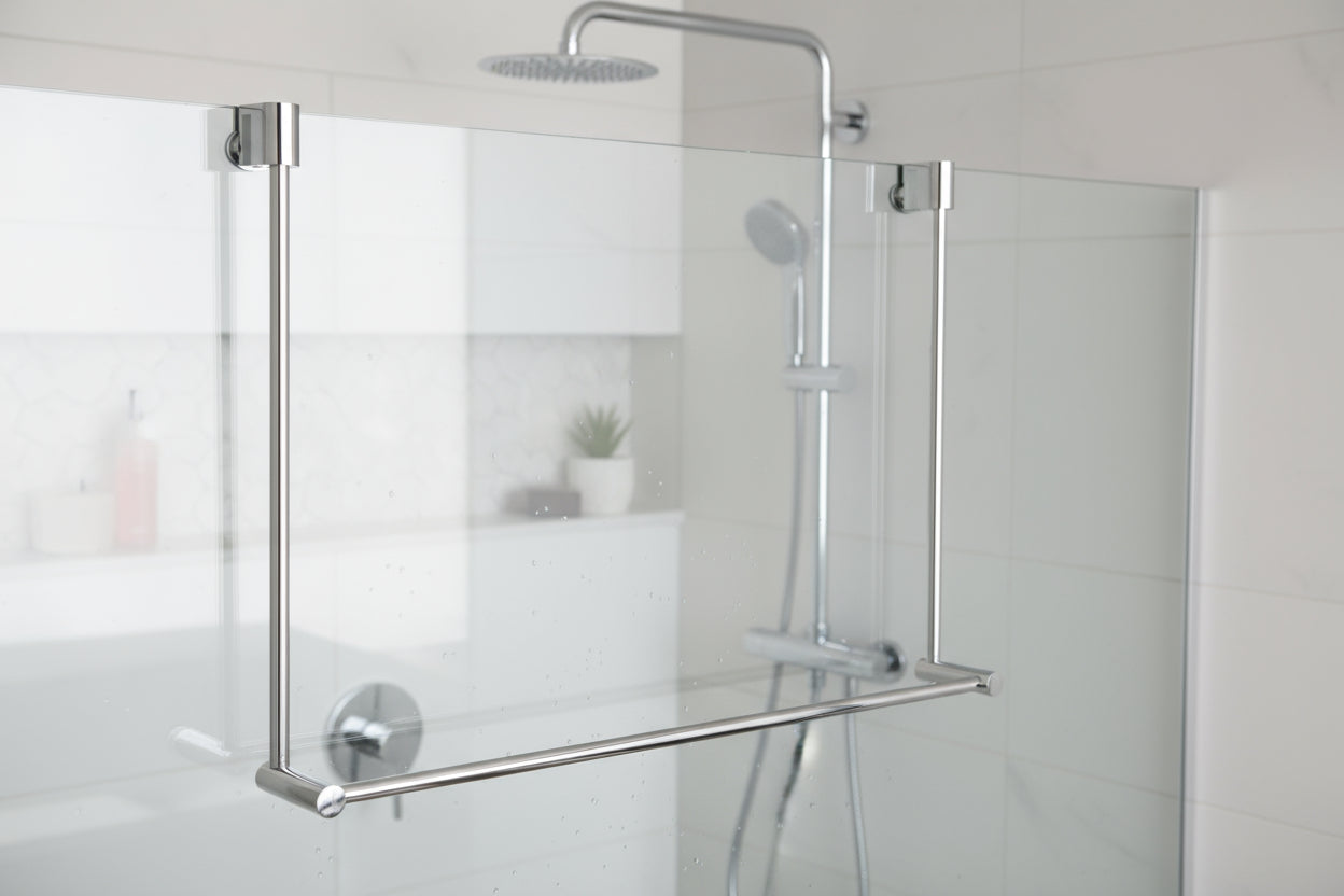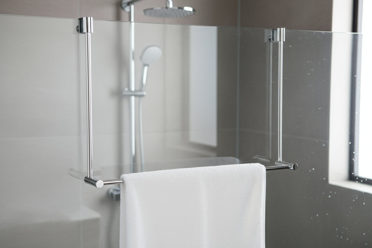 Smedbo Handtuchhalter 1-reihig (Art.Nr. DK3101) – der ideale SIDELINE Handtuchhalter für Glasduschwände. Dieser elegante Handtuchhalter ist speziell dafür konzipiert, an der Glaskante deiner Duschwand befestigt zu werden, und überzeugt durch sein modernes Design in Chrom glanz.