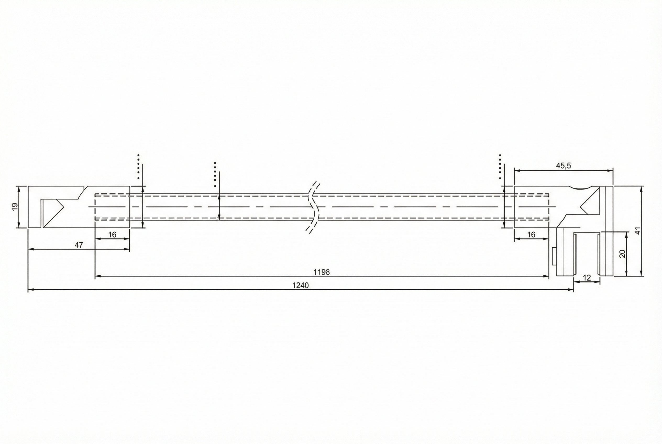 Länge 1200 mm Abmessung rund 12 mm Glasdicke 8 - 10 mm