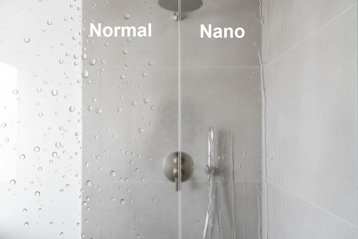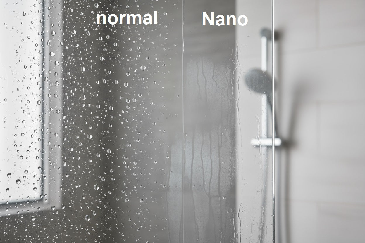 Die spezielle Nanobeschichtung bildet eine ultradünne, unsichtbare Schutzschicht auf der Glasoberfläche. Diese verhindert, dass sich Kalk, Seifenreste und Schmutz fest mit dem Glas verbinden können. Wasser perlt einfach ab und nimmt Schmutzpartikel gleich mit – für ein nahezu selbstreinigendes Glas!