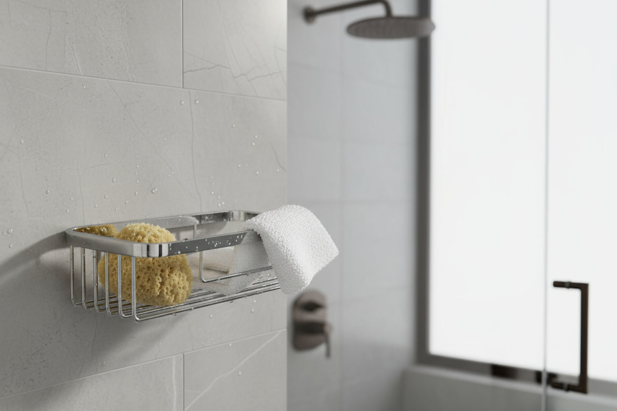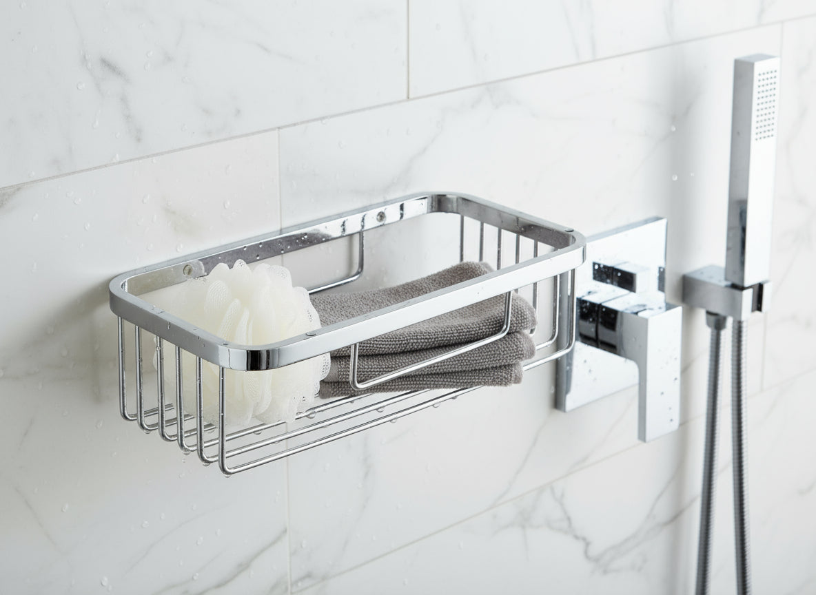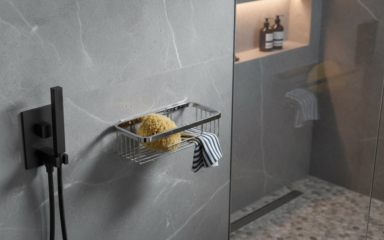 Der Schwammkorb one von VIGOUR ist die elegante und praktische Lösung, um Ordnung in Ihrer Dusche zu schaffen. Mit seiner hochwertigen, verchromten Oberfläche und dem zeitlosen Design fügt er sich harmonisch in jedes moderne Bad ein. Der rechteckige Korb bietet ausreichend Platz für Schwämme, Duschgel oder Seifen und sorgt dafür, dass alles stets griffbereit ist.